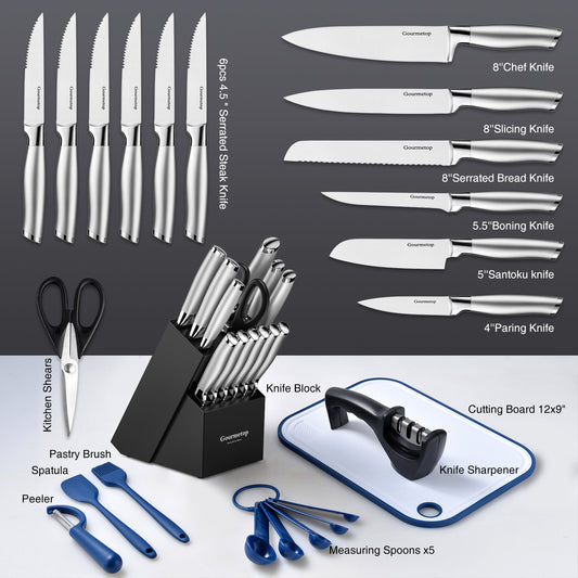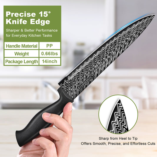 Knife Set, 20 Pcs Kitchen Knife Set with Block, Sharpener, Cutting Board & Essential Gadget. Sharp Stainless Steel Knives Set for Kitchen Cooking, Knife Block Set Dishwasher Safe