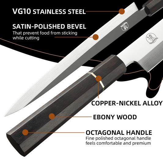Sushi Knife Japanese Sashimi Knife 10.5 Inch, Japanese Yanagiba Knife VG10 Superior Steel Single Bevel Slicing Knife with Premium Octagonal Ebony Handle, Carving Sets Knife