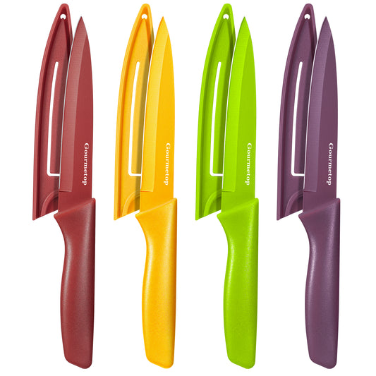 Paring Knife with Cover, Paring Knives Set of 4, 4.5" Paring Knife Set of Premium Stainless Steel, Small Kitchen Knife Set for Fruit and Vegetable, Ergonomic Knife Handles for Versatility