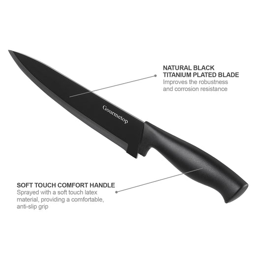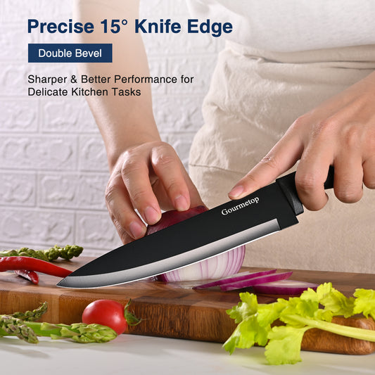 Kitchen Knife Set with No Drilling Magnetic Strip for Kitchen Black Titanium Small Cooking Knives, Sharp Stainless Steel Chef Knife Set for Cutting Meat & Vegetable